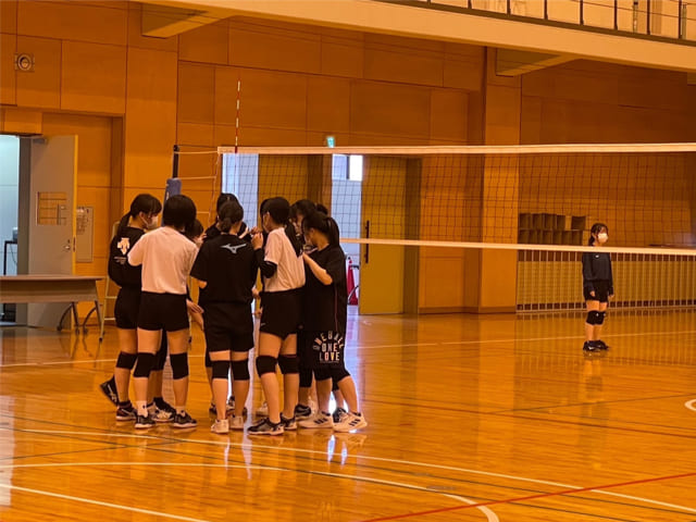 全道大会出場を目標に日々練習に励んでいます。私たちの部活動の方針は「自ら考え、自ら動く」です。自分たちにどんな練習が必要なのかを考え、短い練習時間の中でも最大限の効果が得られるようにしています。キャプテンや副キャプテンを中心とし、顧問も話し合いに参加しながら練習メニューを作ります。練習中は休憩時間にもボールに触っている選手が多く、時間を無駄にしないように、そして自分自身の技術を向上するために練習に取り組んでいます。