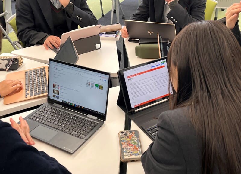 | デジタル・シティズンシップ教育とはICTのよき使い手となって、積極的に社会に貢献しようとする姿勢を育む教育です。そのため、立命館慶祥では授業内外の学校生活での端末利用を、原則として「自由」にしています。トラブルが起こることもありますが、それを解決して人間的に「成長することを大切にしています。 |